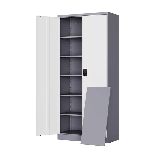 Mlezan 71" White Metal Storage Cabinet: 2 Doors, 5 Adjustable Shelves, Steel Cabinet for Home, Kitchen, School, Office, or Garage Storage.