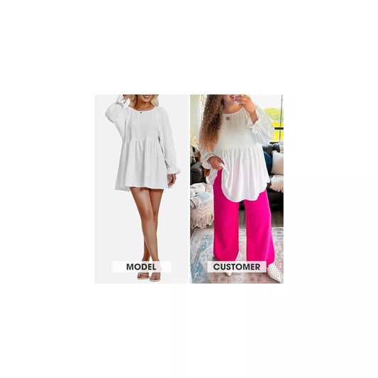 EXLURA Womens Long Sleeve Blouses Swiss Dot Babydoll Loose Fit Maternity Top 2025 Spring Fall Tunic Shirts Dressy Casual Tops White