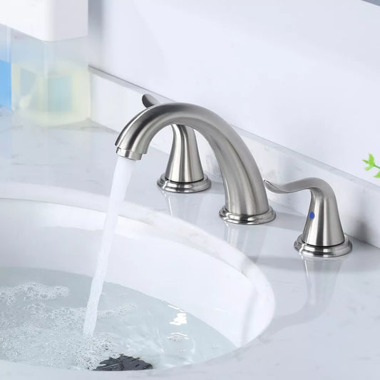 WOWOW 8 in. Widespread Double Handle Bathroom Faucet with Drain Kit