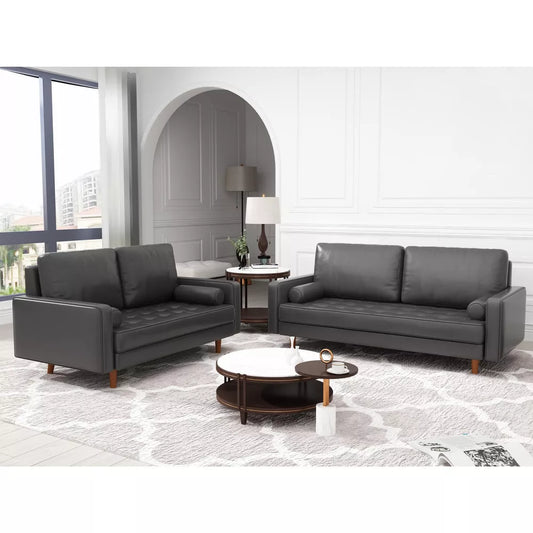 Luige 2 Piece Mid-Century Modern Square Arm Faux Leather Sofa and Loveseat Set - Tree City