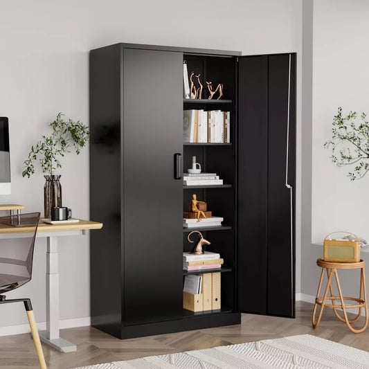 Mlezan Metal Storage Cabinet: Lockable, Adjustable Shelves, Steel Locker for Home, Office, or Warehouse. Durable and Versatile Storage Solution.