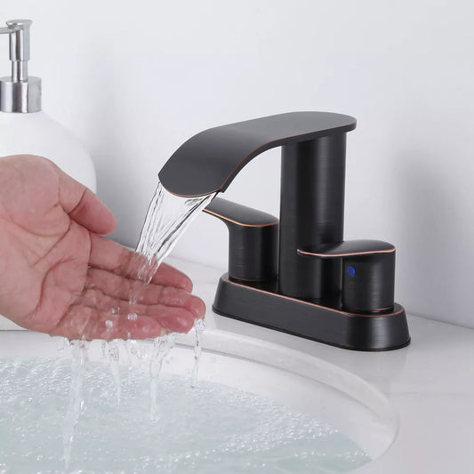 WOWOW 4 in. Centerset Double-Handle Waterfall Bathroom Faucet