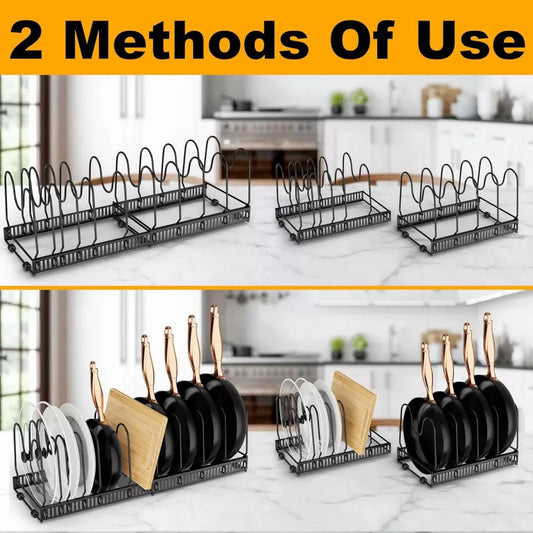 DOMETOUR Pots and Pans Organizer Expandable Rack for Cabinets, Kitchen Cabinet Organizer Holder with 10 Adjustable Compartment