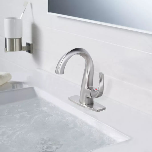 WOWOW Single Handle Gooseneck Bathroom Faucet with Deckplate Included