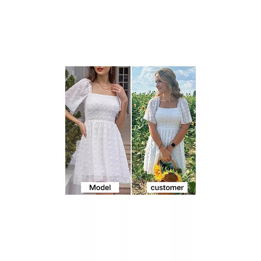 EXLURA Women's Summer Casual Square Neck Dresses Ruffle Short Sleeve Swiss Dot Flowy Mini Dress